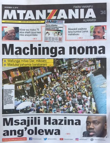 HAYA HAPA MAGAZETI YA LEO ALHAMIS DESEMBA 08,2016